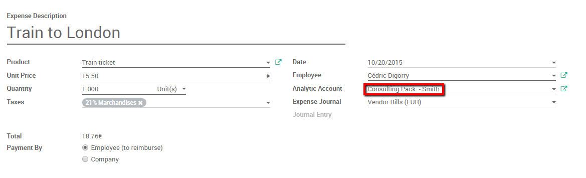 Empezaremos registrando un gasto. Nuestro técnico IT tuvo que tomar un tren para ir a ver a nuestro cliente. Él mismo pago por su tiquete.