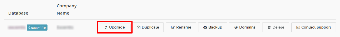 Make sure to be connected to the database you want to upgrade and access the database management page. On the line of the database you want to upgrade, click on the "Upgrade" button.