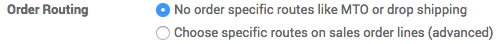 Luego vaya al menú . Localice Ruta de Pedido y marque la casilla Elegir rutas específicas en líneas de órdenes de venta (avanzado). De clic en Aplicar.