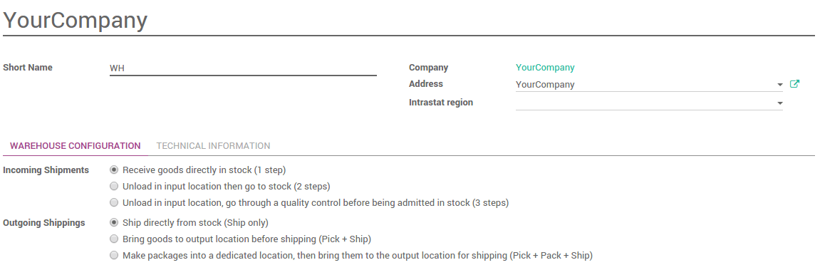 Cuando una órden va al departamento de envío para entrega final, Odoo esta programado por defecto para utilizar una operación de un-paso: una vez que todos los bienes están disponibles, estos están disponibles para ser enviados en una sola órden de entrega.