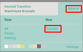 El paso final es crear su transferencia interna. Si quiere transferir 2 unidades de un producto desde su primera bodega a otra en Bruselas, proceda como sigue: