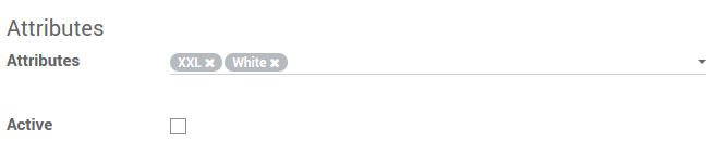 Por defecto, con la plantilla de producto anterior, se obtiene 15 productos diferentes (3 colores, 5 tamaños). Si el tamaño XXL sólo existe para las camisetas rojas y azules, puede desactivar la variante de producto blanco.