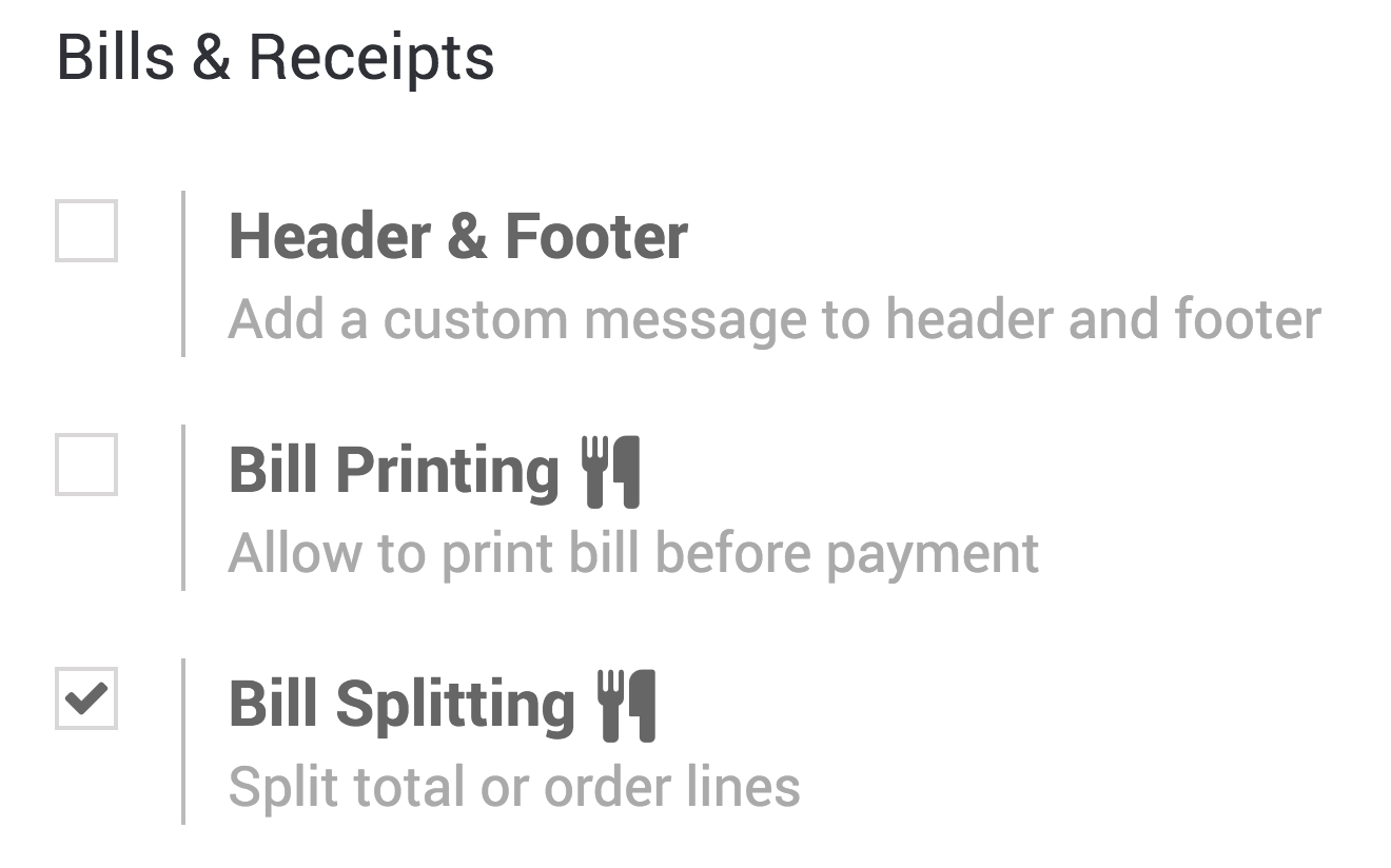 Under the Bills & Receipts category, you will find the Bill Splitting option.
