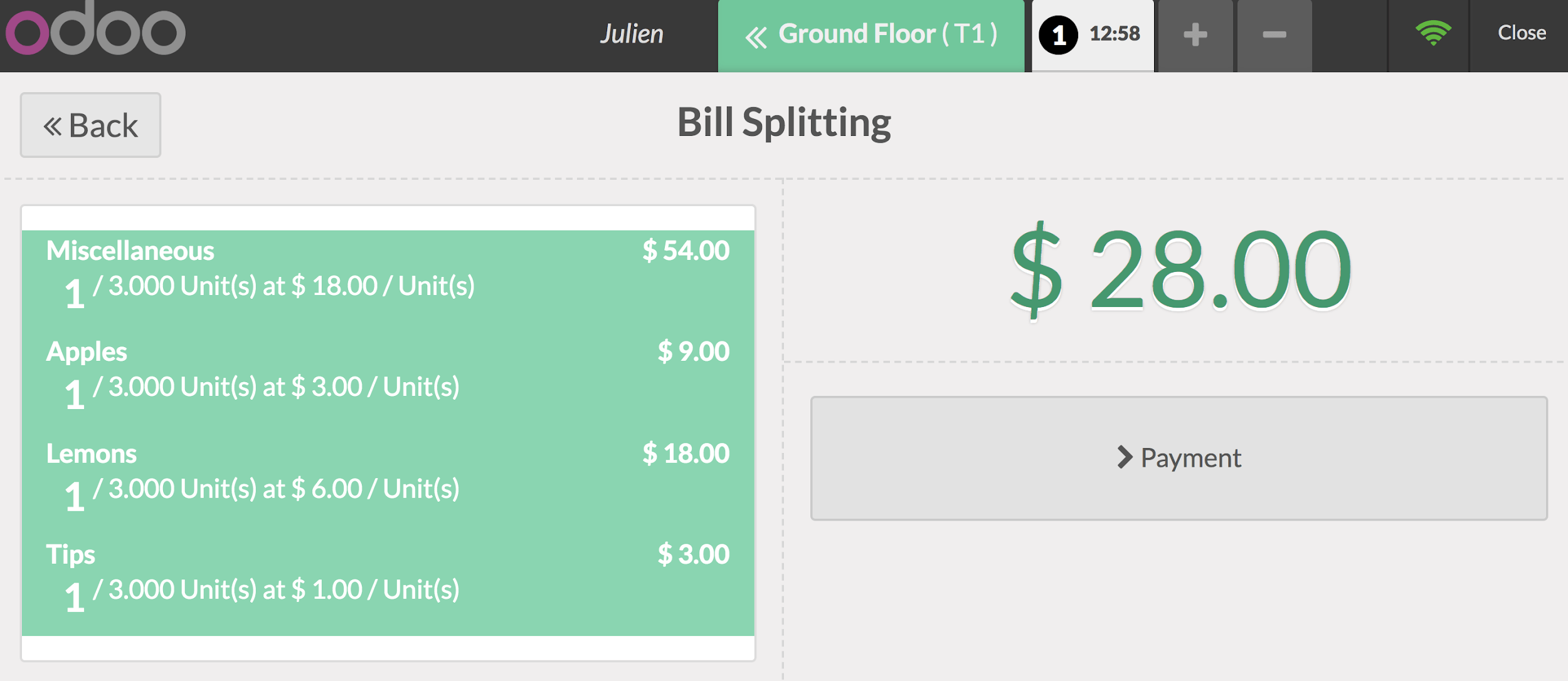 Offering an easy bill splitting solution to your customers will leave them with a positive experience. That's why this feature is available out-of-the-box in the Odoo Point of Sale application.