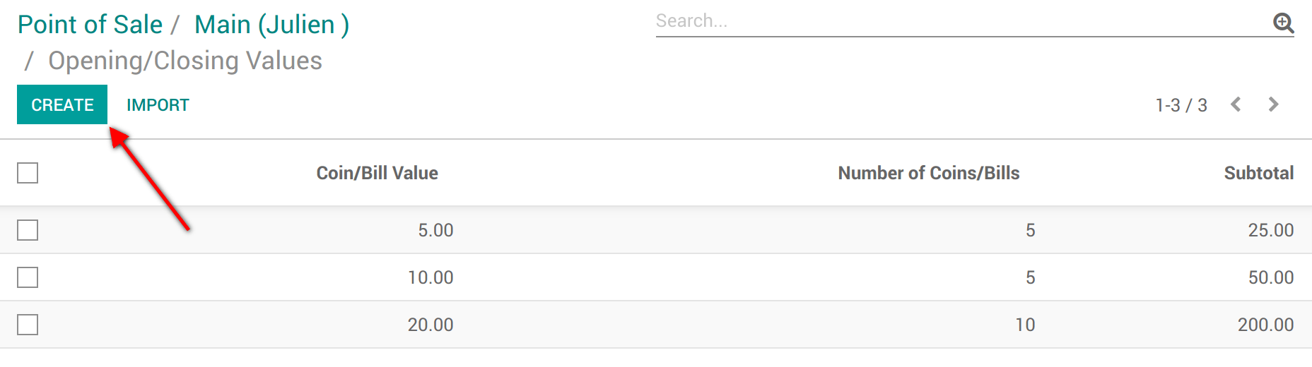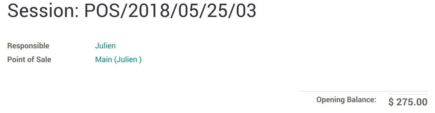 En este ejemplo, pueden ver que quiero tener 275 $ en varias denominaciones en la apertura y el cierre.
