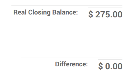 Luego puede ver el balance teórico, el balance de cierre real (lo que acaba de contar) y la diferencia entre los dos.