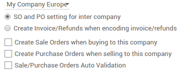 Las órdenes de compra y órdenes de venta se pueden relacionar. Si una empresa dentro de su grupo crea una compra o una orden de venta, el documento correspondiente se crea automáticamente para su empresa. Todo lo que tienes que hacer es comprobar que todo está correcto y confirmar la venta. Puede automatizar la validación en sus ventas y órdenes de compra.