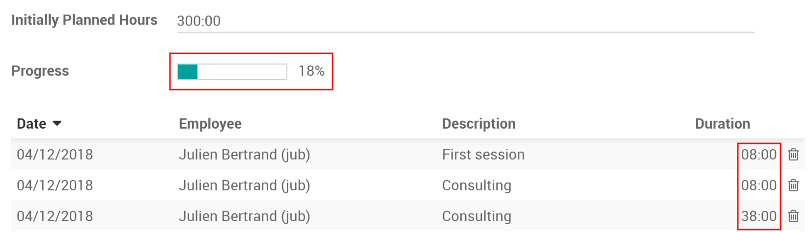 Bajo las hojas de horas, puede asignar quién trabaja en él. Puede o pueden agregar cuántas horas trabajaron en el proyecto hasta el momento.