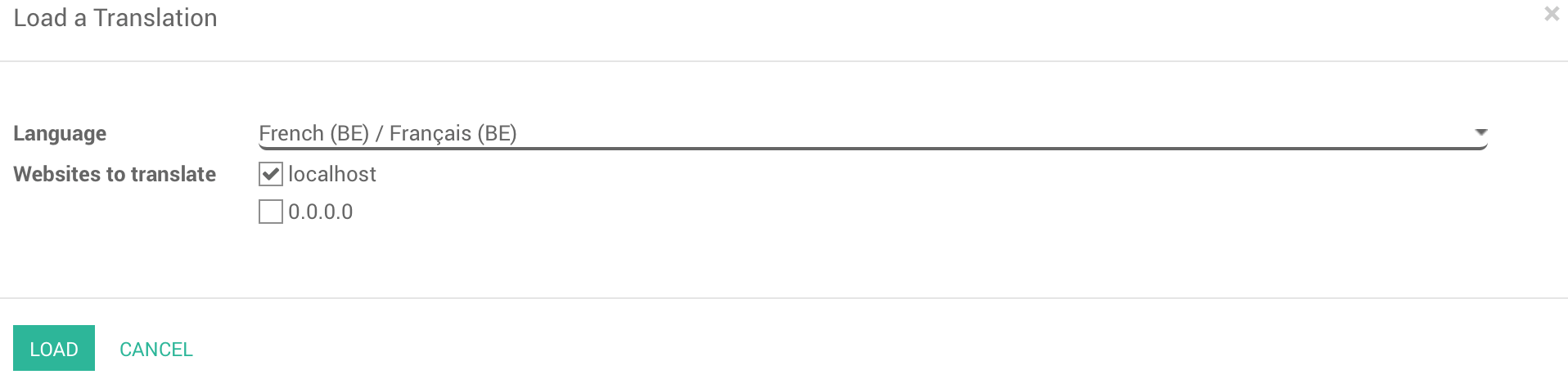 Elija el idioma en el cual quiere traducir su sitio web y luego de clic en Cargar.
